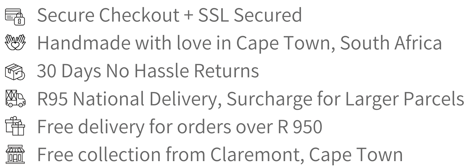 - International shipping can be arranged, please email hello@tiger-lily.co.za for a quote.